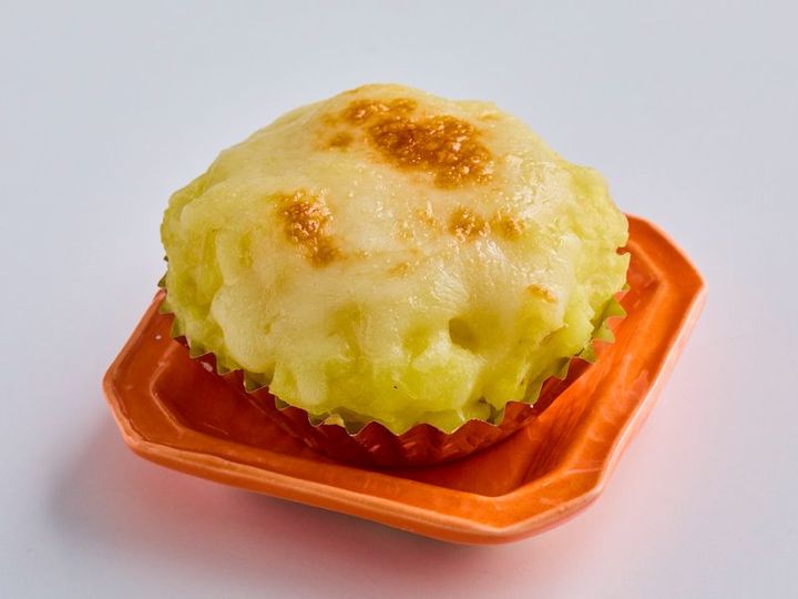 (1)をアルミカップに入れて平たくならし、チーズをのせる。オーブントースター(1000W)でチーズが溶け、かるく焼き色がつくまで5~6分焼く。