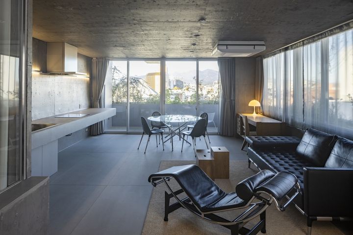 3部屋とも光が注ぎ込むオープンスペースにベッドルーム、リビング、ダイニングキッチンの機能を取り⼊れ、バスルームにはドラム式洗濯乾燥機を常設。ベランダからは、群馬の名峰、赤城山を臨むことができる。