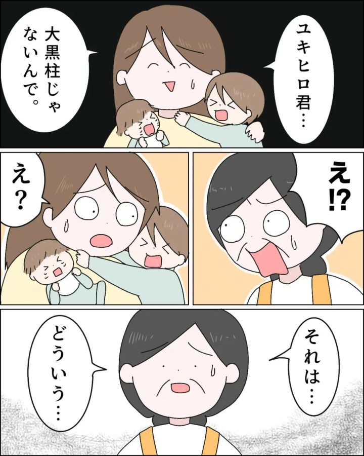 「ユキヒロ君、大黒柱じゃないんで。」と、家に来てから繰り返し言われる「大黒柱」を否定しました。夫を大黒柱と言わない私によほど驚いたのか、「え!?」と義母は目を丸くしましたが、そんなリアクションに逆に驚いたのは私。