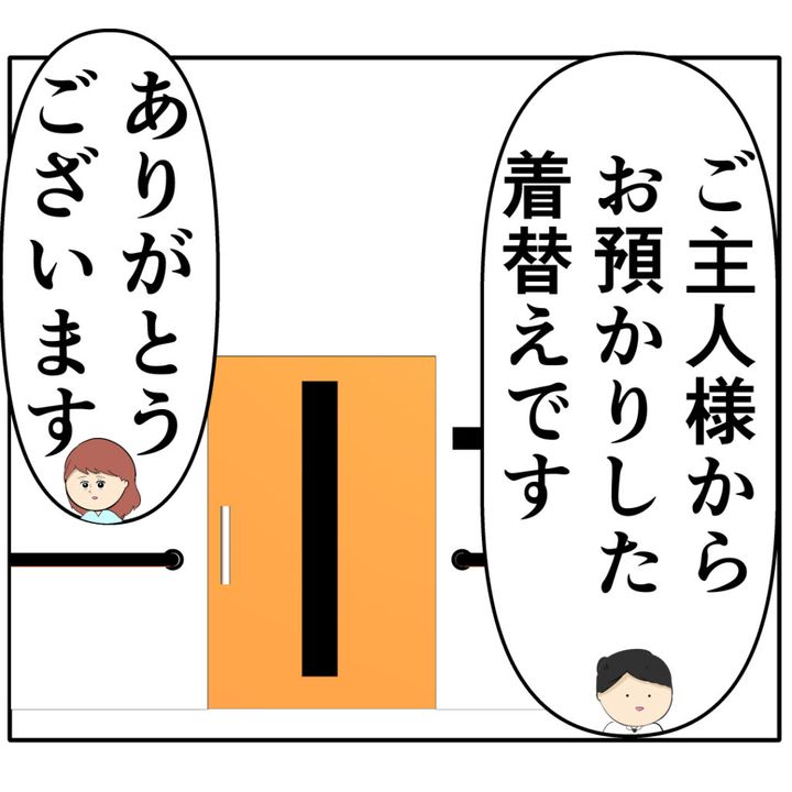 ろみ緒さんと離婚について話し合っている途中で具合が悪くなり、答えが出ないまま入院することになってしまっためいさん。入院中、めいさんは看護師さん経由でろみ緒さんから着替えを受け取りました。