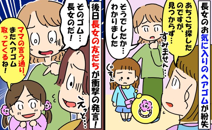 保育園でヘアゴムが紛失。後日、お友だちがママに「またヘアゴム取ってくるね!」え…?問いただすと