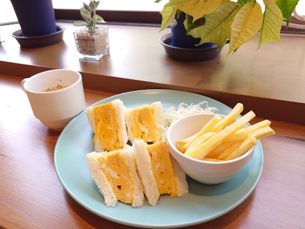 日替わりランチ以外にも、パスタやサンドイッチのセットがあり、こちらもなんと700円! 私はこの日、厚焼き玉子サンドのセットをいただきました。