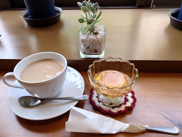 そして、ファンが多いのが自家製スイーツ。 バニラアイス、コーヒーゼリー、プリン、フレンチトーストと、どれも手作りのやさしい味わいが人気。 プラス300円でランチとセットにできるので、私はミニプリンをセットにしていただきました!