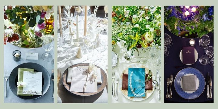 ショープレートはゲストが席に通され、最初に目にするものであり、パーティの印象を大きく左右する大切な要素。ふたりのイメージするパーティにふさわしいデコレーションを!