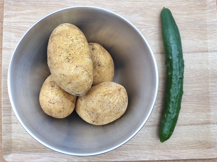 じゃがいも:ひと口大に切り、さっと水洗いします。