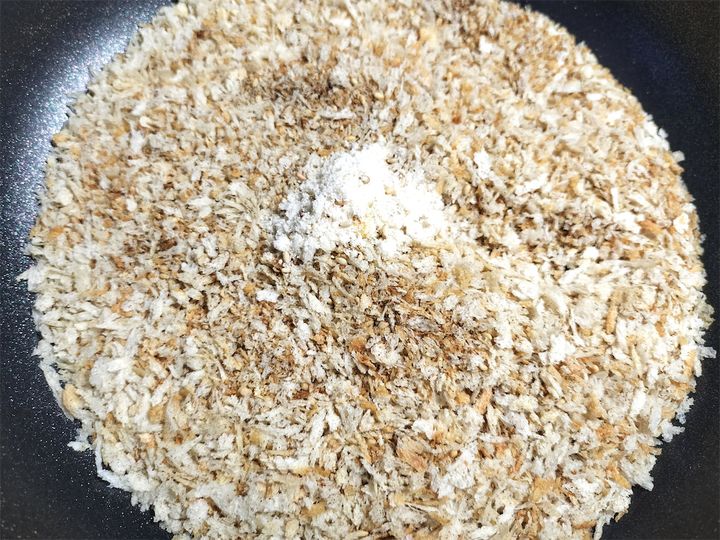 4. 鶏がらスープの素を加えてよく混ぜたら、金沙粉の出来上がりです。