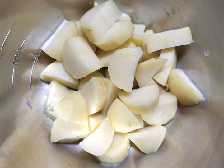 1. じゃがいもを600Wの電子レンジで6分加熱します。