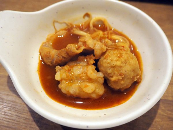 この日いただいたのは、鍋の前にまず激辛サイドメニュー3連発。辛さのレベルが段階的にアップしていく“スパルタ式”です。