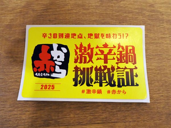 そしてサインをすると、「激辛鍋 挑戦証」ステッカーがもらえます。記念にスマホケースに貼ろうかな…!