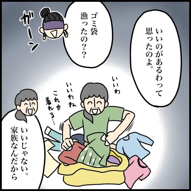 「家族なんだから」」義姉が捨てた服をゴミ袋から漁って着る義母。捨てられない義母|ママ広場マンガ