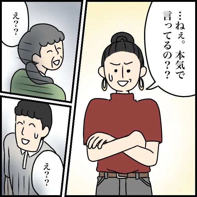 すると、これまで黙って話を聞いていた義姉が、「・・ねぇ。本気で言ってるの??」義姉の真顔と、「え??」と言うジュンペイと義母の表情が忘れられませんでした。