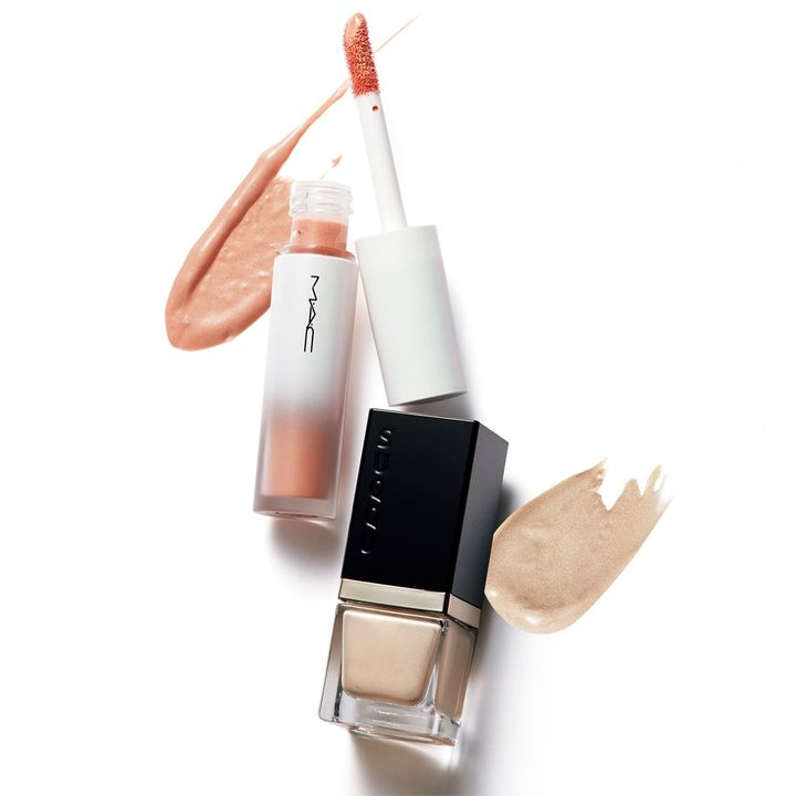 上:ストロボ ビーム リキッド ブラッシュ スターライト ¥4,840(M・A・C)下:シマー リクイド ハイライター 02 ¥