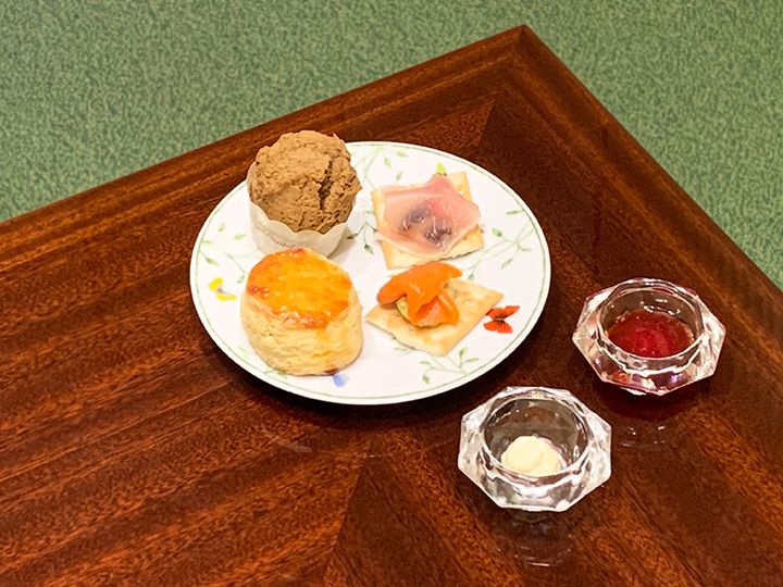 今回いただくのは「アフタヌーンティーセット」。季節のデザートや焼き菓子、セイボリーなどさまざまなメニューを一度に楽しむことができます。