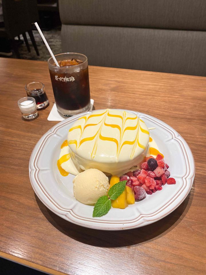 【期間限定スイーツ】ビジュ抜群!「アップルマンゴー&レアチーズクリームの ホットケーキ」が期間限定で登場中!《珈琲館》