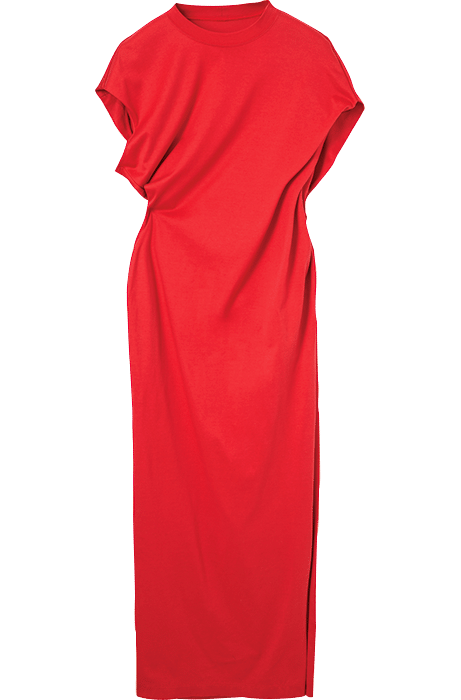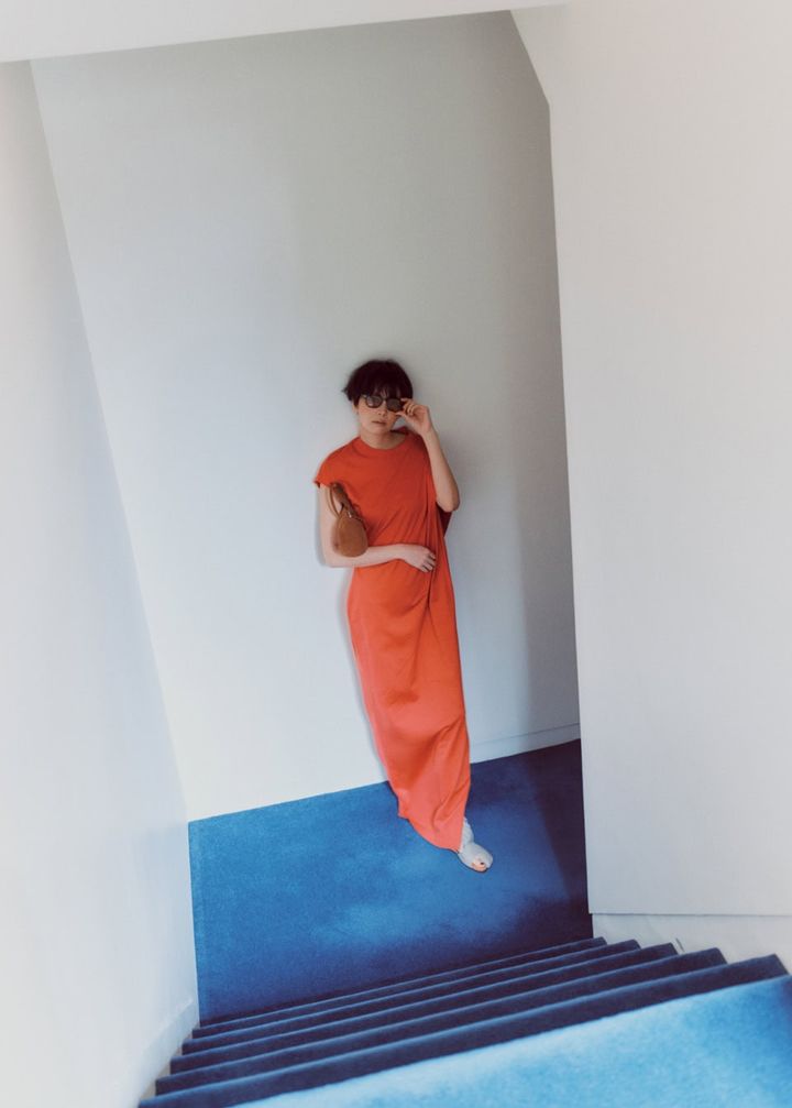 「Tシャツドレスって便利だけど、ちょっとカジュアル過ぎたり、部屋着に見えがちだったりしますが、これはさすがMame。圧倒的な発色のよさと、アシンメトリーな独特なフォルムで、ドレスの風格あり。こういうのをビーチサンダルでサラッと着こなしたいですよね。ありそうでなかなかない1枚かなと思います」(樋口さん以下同)