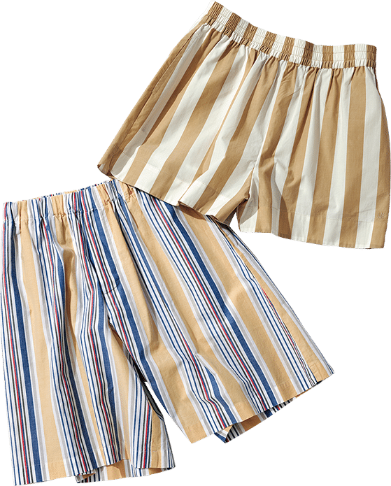 上から:ショートパンツ¥31,900(レモネード/サードマガジン)、ショートパンツ¥20,900(ベースレンジ/アダム エ ロペ)