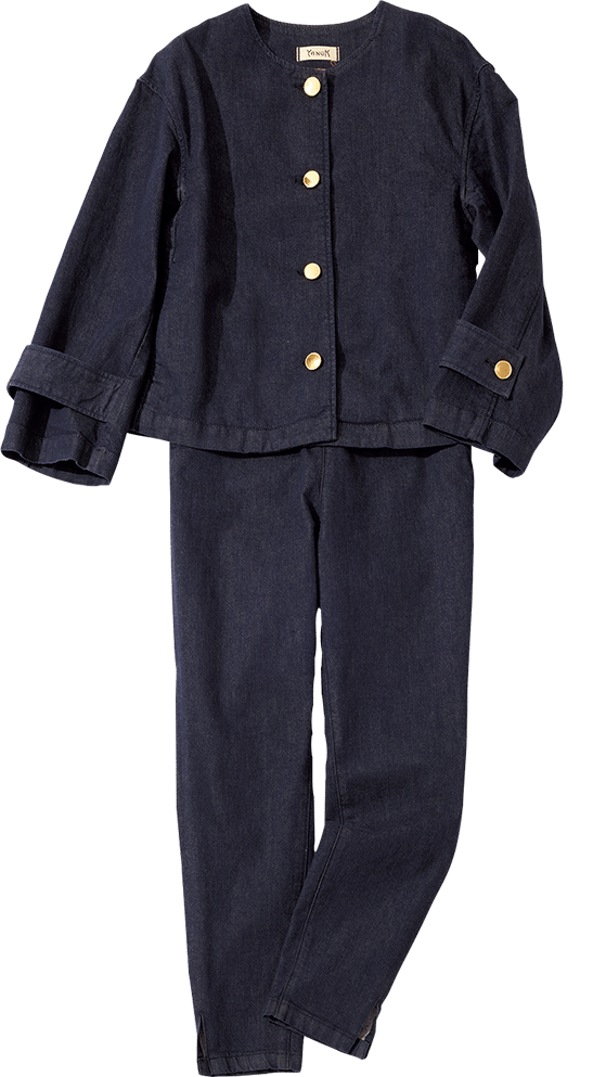デニムジャケット¥40,700、デニムパンツ¥34,100(共に樋口かほり × YANUK/カイタックインターナショナル)