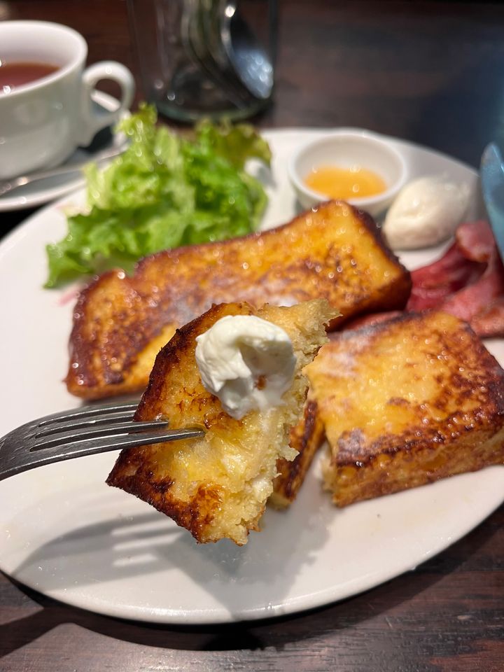 ふわふわのフレンチトーストに塩味が良く効いたベーコン。