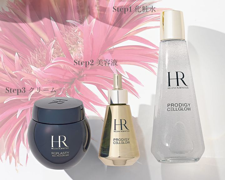 雪に覆われたアルプスに生息するエーデルワイスは、時には−30℃まで下がる気温変化などの厳しい環境に耐える能力を備えている。そんな花のエキスを3つの方法で抽出し、ふんだんに配合。肌に艶やかさをもたらすローションとオイルセラムをSTEP1、2に。夜は先進のメソッド発想で誕生したクリームをSTEP3にプラスすることで、肌の修復効果が高まり、翌朝には引き締まった上向きの肌を体感できるはず。STEP1:プロディジー CELグロウ デューイ エッセンス ローション 200ml ¥26,840、STEP2:同 オイリクシー 30ml ¥38,500、STEP3:リプラスティ R.C. クリーム 50ml ¥68,200(ヘレナ ルビンスタイン)