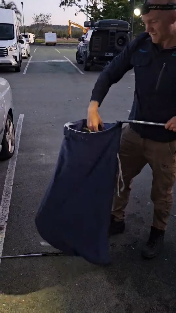 男性は慣れた手つきで捕獲したヘビを網の中へ。