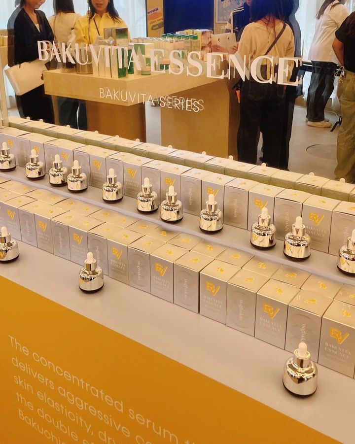 この2つが組み合わされた夢の美容液が【BAKUVITA ESSENCE】で、開発には2年以上かかったそう。筆者の肌悩みは毛穴なので、連休中から日々、せっせと塗り込んでいます。肌なじみのよい使用感で、使い続けるうちにツヤだけではなく、自然にトーンアップしていく感覚があります。ベタつきも少なく、これからの湿気の多い季節も使いやすいはず。Mちゃんは同じmgb skinの【HIGHCERA BOOSTER】を長く愛用しているそうで、一緒に使うとさらに肌調子がよいとのこと。ポップアップストアで力説してくれていたのに店内がかなり盛況でこちらは購入できなかったので、近いうちに手に入れたいと思っています。