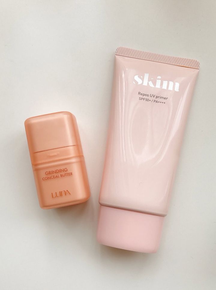 左から:LUNA グラインディング コンシール バター¥2,640、skim Repos UV primer¥3,980