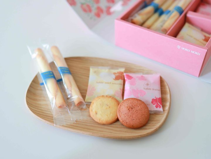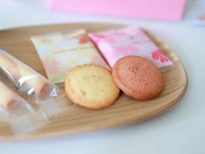 「サブレ フレーズ」は、苺のパウダーを練り込んだ、やさしいピンク色の甘酸っぱいクッキー。苺の種によるつぶつぶとした食感にも注目です。一方の「サブレ ミエル アマンド」は、春の訪れを告げるアーモンドの花から採れたはちみつを使用し、ローストアーモンドとともに練り込んで焼き上げたサブレ。はちみつの華やかな香りと奥行きのある甘さが、口いっぱいに広がります。