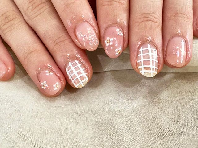ニュアンスピンクにチェックが映える!ガーリーネイルしてみませんか