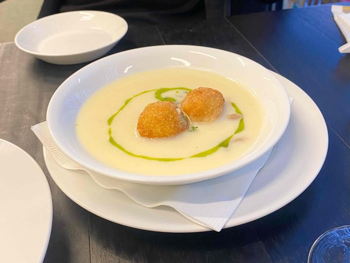 は、一口サイズのコロッケがしっとりしていて美味しい。スープを絡めていただくと、ポロネギの香りを優しくまとってさらに満足度の高い食事へと昇華します。