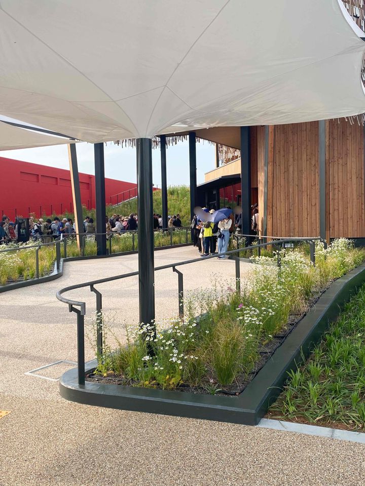 伝統を通じて過去と未来の架け橋となることを目指しているハンガリーパビリオン。ハンガリーと日本の文化の類似点を探り、両国が大切にしている人間と自然との密接な関係に焦点を当てた、ナチュラルな外観が特徴的です。