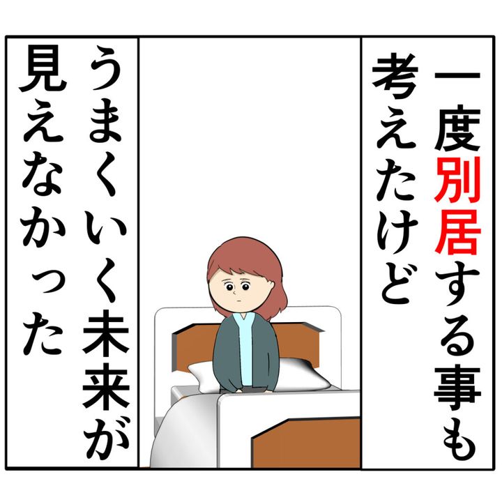 あかりちゃんのために離婚は避けるべきだと考えていためいさんは、再構築のために一度別居してみることも視野に入れていました。それでも、うまくいく未来がめいさんにはどうしても見えませんでした。