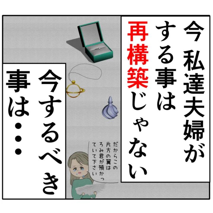 めいさんはとうとう決断の時を迎えました。自分たち夫婦がすることは「再構築」ではないと確信しました。
