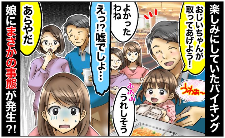 娘と両親と旅行「もったいなーい」楽しみにしていた夕食バイキング。ワクワクの娘にまさかの事態が!?