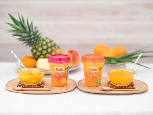 忙しくてなかなかフルーツを食べる機会が少ない、もっと気軽にフルーツを食べたいけれど皮をむいたりカットしたりするのが手間だと感じている人は多いのではないでしょうか。「Doleフルーツカップ」は、カット済みのフルーツを果汁漬けにしカップに詰めた、手軽にフルーツそのものの美味しさを楽しめるアイテムです。このたびたっぷり300gサイズが「果実ごろっと3種のミックスフルーツ」「大粒みかん&アロエ」としてリニューアル。全国のコンビニエンスストアで手に入れることができます。