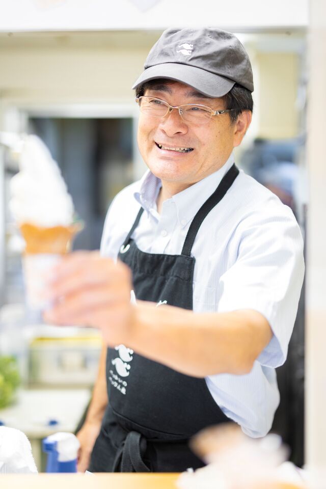 道の駅 おだいとうでソフトクリームを販売する上田さん ©別海町
