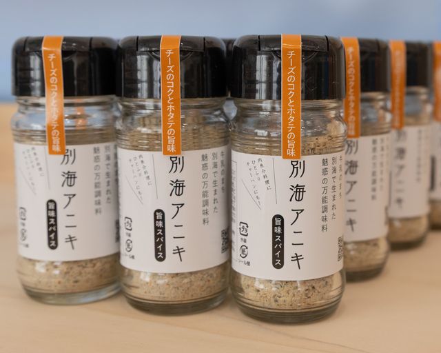 人気のポイント:別海町産のマスカルポーネチーズのコクとホタテの出し汁の旨味が折り重なった魅惑のスパイス。牛ステーキなどの肉料理に、サーモンなどの魚介料理に、炒飯やスープ、餃子、おにぎり等、どんな料理にも合う万能旨味スパイスは、リピーター続出! 小袋タイプは、手軽な別海町のお土産として人気があります。