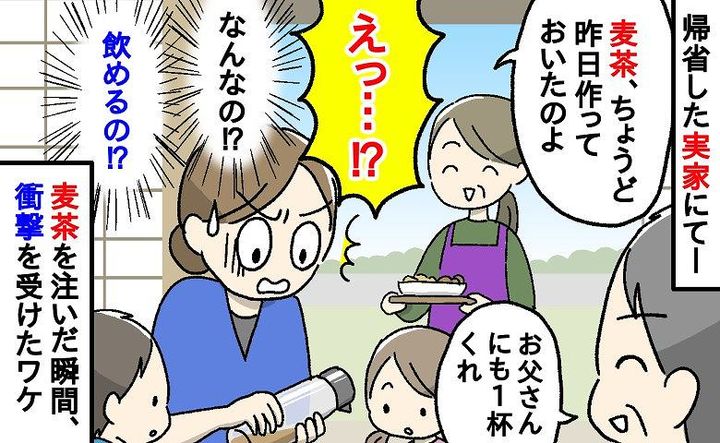 ある日、実家に帰省したときのことです。麦茶をポットからコップに注いだ瞬間、ゾッとしてしまいました……。