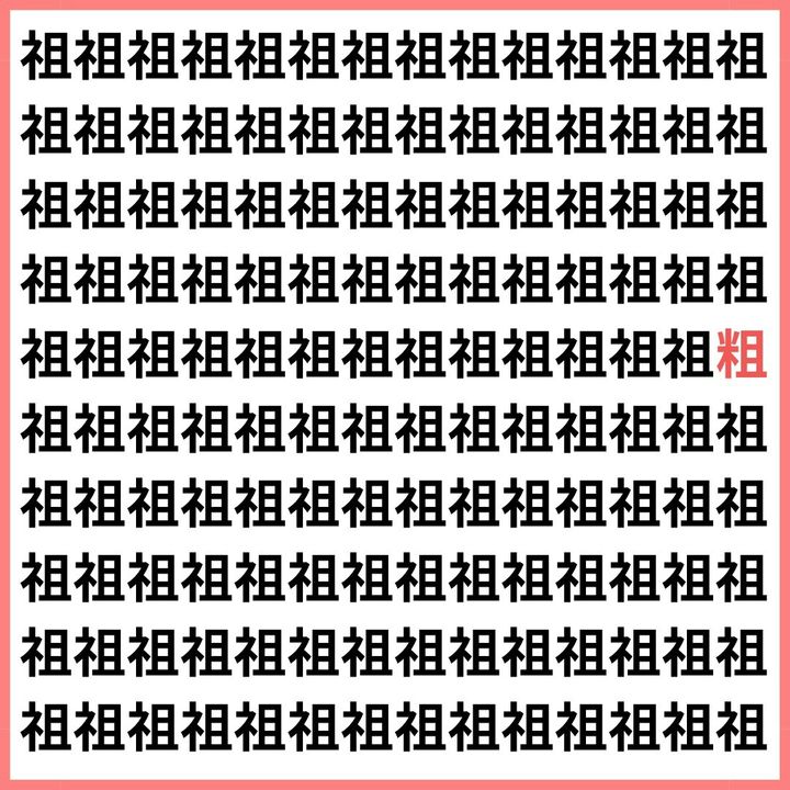 たくさんの「祖」の中に、1文字だけ違う漢字が混ざっています。