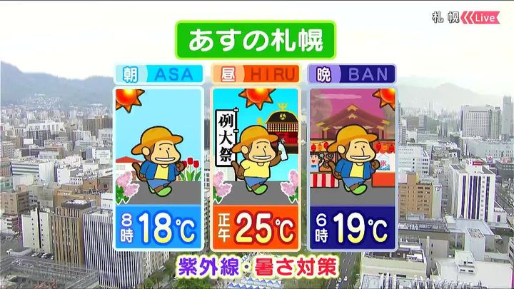 あす15日(木)の札幌です!朝昼晩の天気をもんすけでお伝えします!