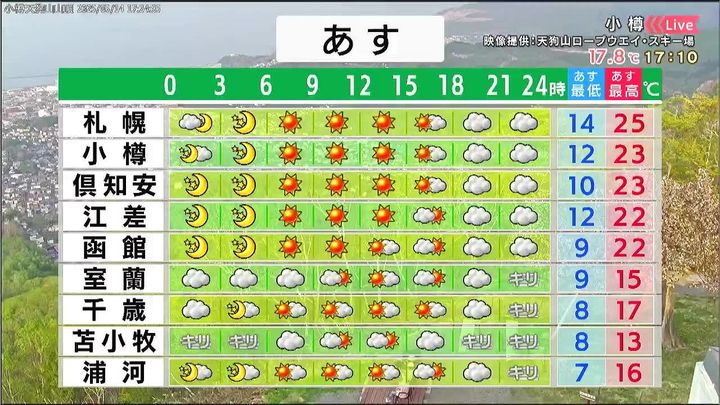 ・あすの札幌の朝昼晩の天気