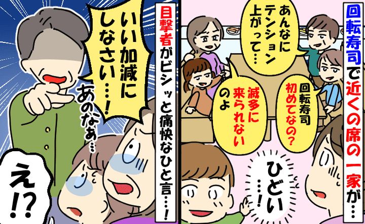 「回転寿司初めてなの〜?」突然わが家をばかにしてきた親子にモヤッ「失礼すぎ」目撃者が痛快な一言!