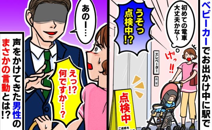ベビーカーでお出かけ中「あのー…」駅のエレベーターが点検中。困る私にスーツ男性がまさかの言動を!?