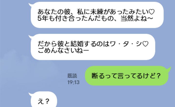 3. 「彼と結婚するのは5年付き合ったワ・タ・シ♡」元カノから謎の略奪連絡。私「彼、断るって」勘違い女の哀れな末路は