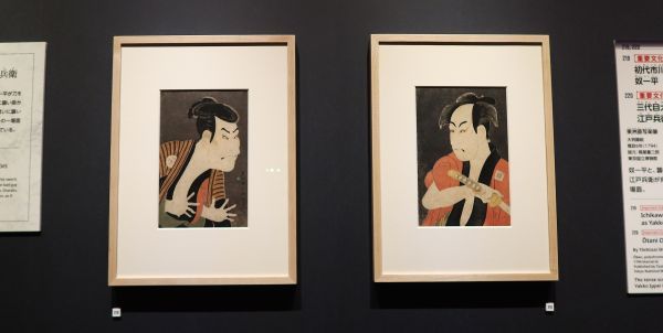 左、重要文化財 三代目大谷鬼次の江戸兵衛 東洲斎写楽筆 1枚 寛政6年(1794)。重要文化財 初代市川男女蔵の奴一平 東洲斎写楽筆 1枚 寛政6年(1794) どちらも東京国立博物館蔵 前期展示:4月22日(火)~5月18日(日)