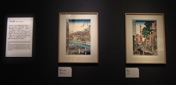 山口晃 左から、《新東都名所 東海道中 日本橋 改》 2012年、《新東都名所 芝の大塔》2014年 「浮世絵現代」展示作品 表慶館 通期展示
