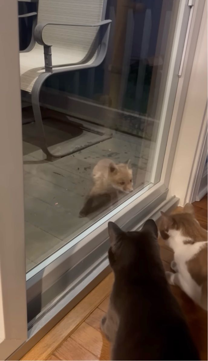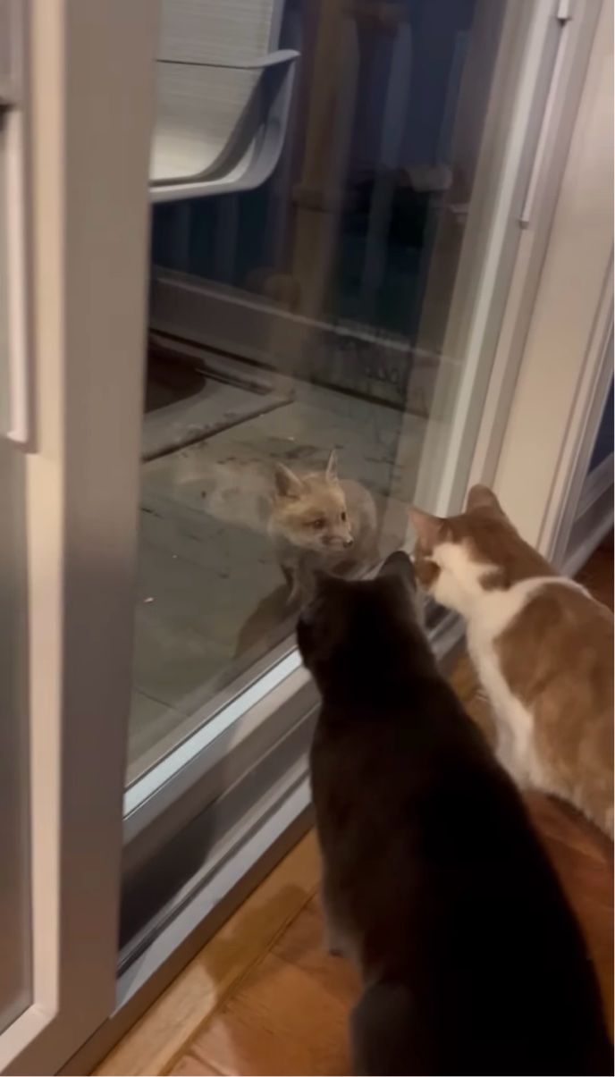 窓の外にやって来たキツネの赤ちゃんに興味部下そうにしていたネコたち。 その一瞬の出会いの様子は、こちらの動画からご覧いただけます。