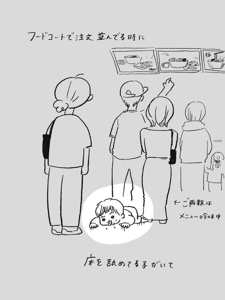 見ず知らずの人に叱られるのは子どもからすると怖いことですが、子どもがいけないことをしていたらそれを止めるのが大人の役目でもあります。ある日、まぼさんがフードコートで注文待ちしているときのこと…。