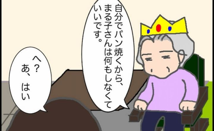 しかし、義母が変わった様子を見せたのもたった1日だけでした。翌朝には、義母が朝食を用意している私のもとへやって来て「負担になるから、あれこれ皿に乗せなくていい」とお気遣いのひと言。しかし、私が作っていたのは自分の朝食でした。なぜなら、義母は自分で用意すると思っていたから……。結局、そのまま義母の朝食を用意することになり、私の負担が軽くなることはありませんでした。