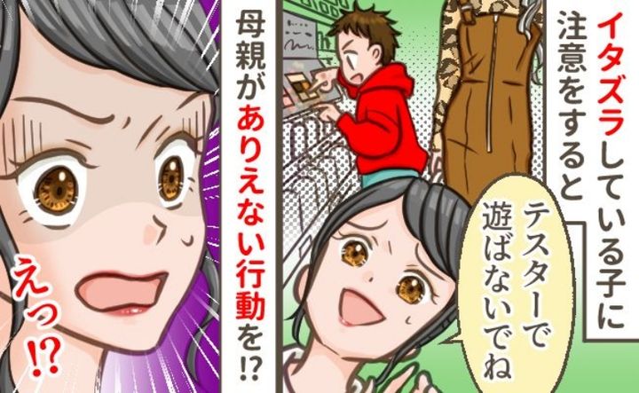 ドラッグストアで美容部員として働いていたころ、お客さんの子どもがイタズラしているのを発見。やんわりと注意すると、その子の母親がまさかの行動に出て……!?