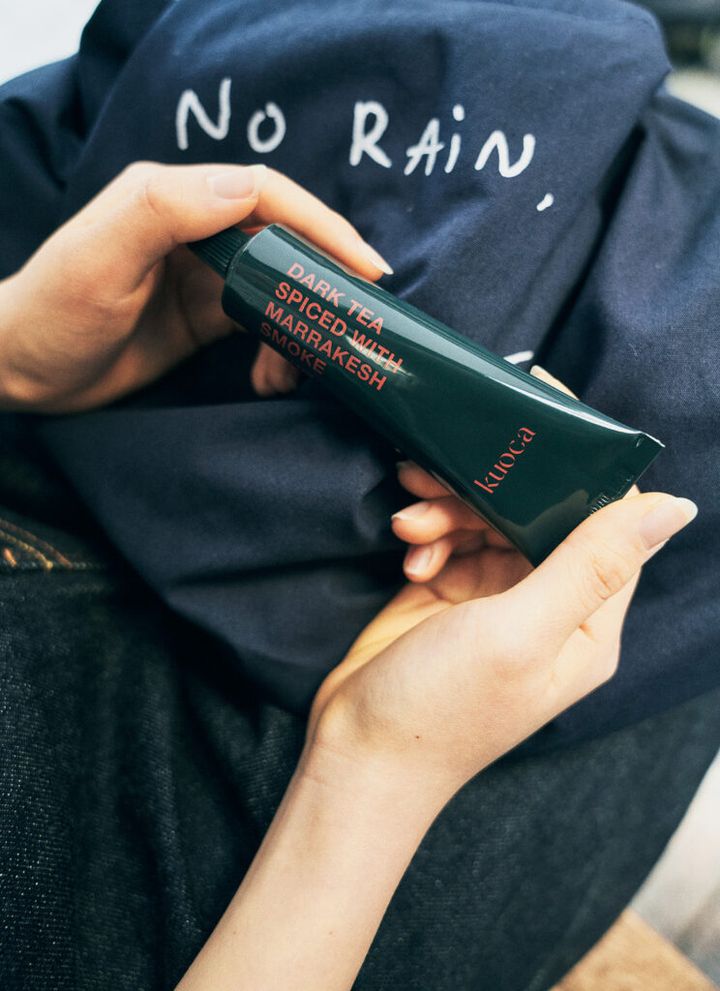 東京・千駄ヶ谷の『モットハウス・トーキョー』で見つけたハンドクリームは、ソウル発のスキンケアブランド〈クオカ〉のもの。ブラックティー、ベチバー、カルダモン、ガイアックウッド、パチョリをブレンドした爽やかでスパイシーな香りで、漂う異国感に気分もリフレッシュできる。ホワイトトリュフ(保湿成分ツベルナグムツムエキス)を配合していて、溶けるようなフォーミュラも気持ちいい。¥2,700(モットハウス・トーキョー 03−6325−2593) その他スタイリスト私物